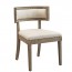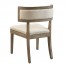 The Klismos dining chair is made from durable solid wood. This design was cherished for its elegance and balance---was depicted in carvings at the Acropolis in Greece. The gorgeous wood with gray tones washed rubbed finish is stunning. These look great from every angle and are low like the table. We adore the reasonable price for this high fashion shape. The chairs seats are wide, comfortable and stylish and we love the side profile.
